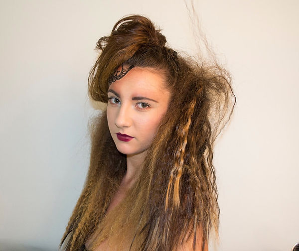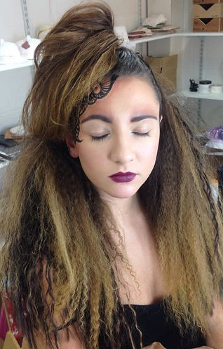 Once I finished crimping I brushed it out with a back comb brush and added a large hair piece that was a close match to my models hair.
